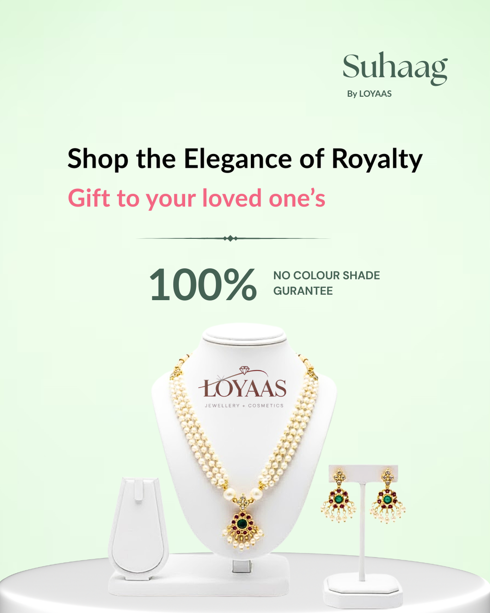 Classic Pearl & Ruby Stone Necklace Set with Earrings